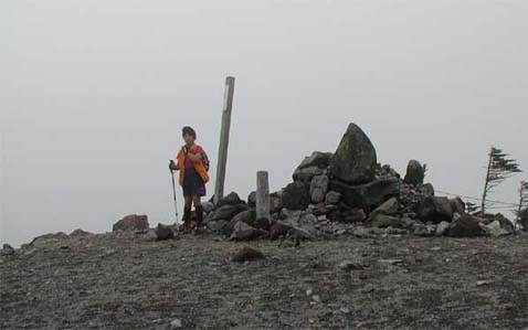 11時半ころ北横岳ヒュッテに到着。休憩。おにぎりを食べました。11時45分出発。15分位でまず南峰に到着。続いてすぐ北峰に到着しました。眺望が全くきかず風が冷たいのですぐに双子池の方へ降り始めました。