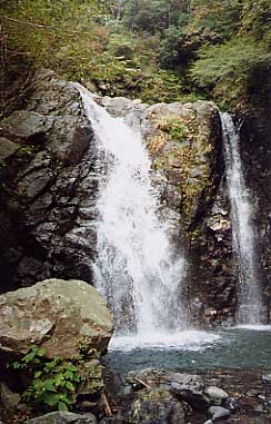 F2とF3の間で、上の写真の小滝の右側に鎖がついていたが、足場が悪そうだったので左右の水流の真ん中を登った。