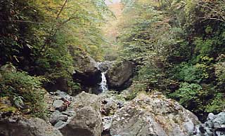 10月28日(土)8:40千葉の自宅をバイクで出発。秦野中井ICに10:00頃着。戸沢林道(未舗装だが市道)を通って戸沢出合いへ10:40頃着。この辺には小屋が何軒かあったが、みなひとけが無かった。駐車スペースには20台位の車が駐車しており、空きスペースはわずかだった。すみにバイクをとめ、沢登りの身支度をしていざ出発。今回もTシャツの下にウェットスーツのベストを着込んだ。11:10