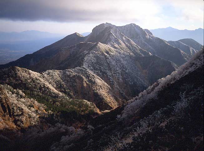 御小屋尾根からのルートと合流し、摩利支天のあたりの梯子や鎖は凍結していたので滑らないように慎重に通過して、