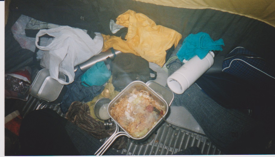 夜は隣の2人組のテントがうるさかった。24時過ぎてもまだ大声で話をしていた。おかげで熟睡できたのは3時頃からだった。