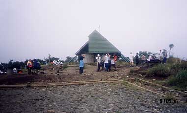 ほぼ12:00に頂上に着いた。休憩込みで2時間45分だった。頂上は広々としていて晴れていたら眺めがよさそうだったが、薄曇りであったため、遠くは見えなかった。