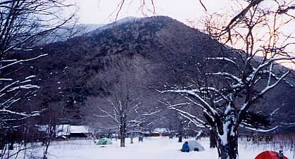 彼らも近くにテントを張った。徳沢園は冬季小屋のみ開放されているようで、ビールが購入できるかどうかは確認しなかった。