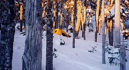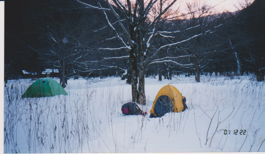 ときおり強風が吹いたが、全般には静かな夜だった。-10度くらいだったと思うが、MEのスノーライン(羽毛量750g)に入っていたら足がぽかぽかしてきて、夜中に靴下を脱いだ。