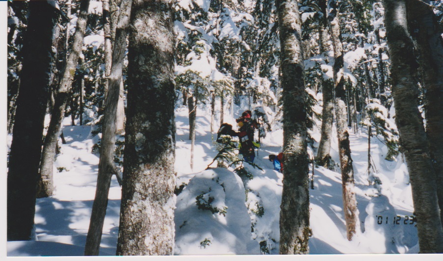 トレースは一応あるのだが、この日の雪の状態は、スノーシューか輪かんをつけた方が歩きやすかったと思う。
