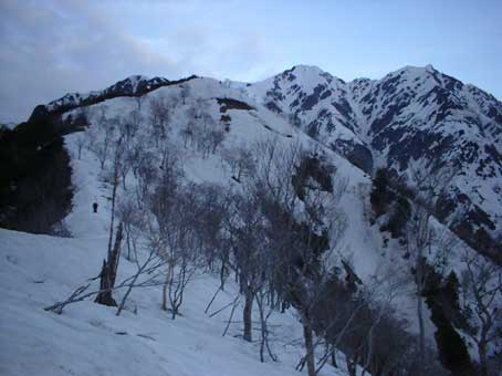 降り始めると、雪がかなり柔らかくなってきたことに気が付いた。もう少し早く降り始めればよかったか。