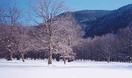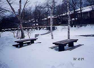 一晩で雪が大分積もった、 右は妖精の池のあたり