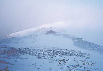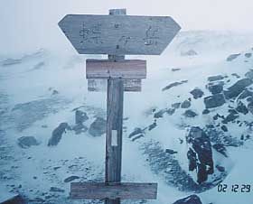 頂上の標識付近は風で雪が飛ばされ地面が見えている所もあった。