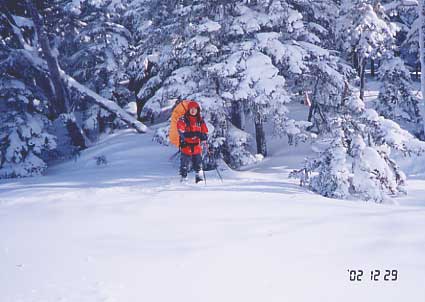 ほとんどトレースのないところを、二人だけでラッセルして登っていった。この夫婦はかなりの強者だと思った。