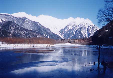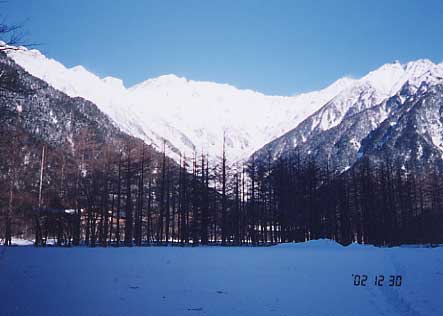 上高地では西穂〜奥穂〜前穂の稜線がきれいに望めた。