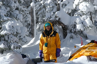 テントのまわりは新雪が20〜30センチ積もり前進するにも後退するにも全くトレースは見えない状態だ。