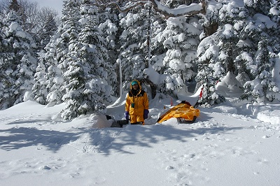 情けない。しかし雪の状態は昨年より締まっていて、潜り方は少ないと思った。