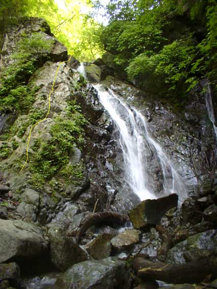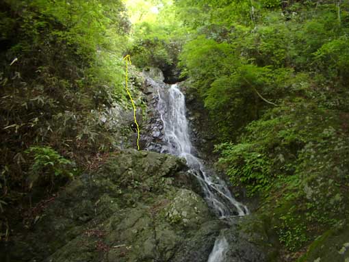 1回目はG隊員と二人で登った。この時はロープを垂らして登っていたので安心感があり、全ての滝を直登した。