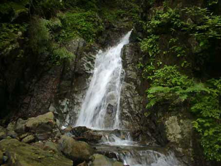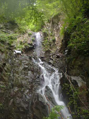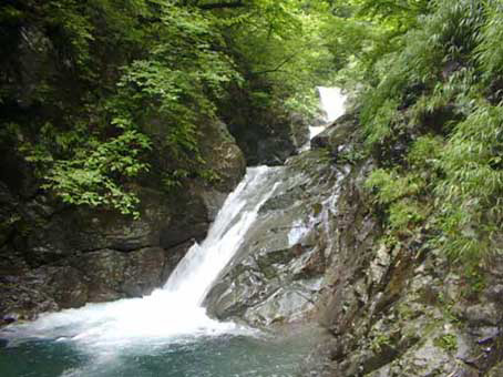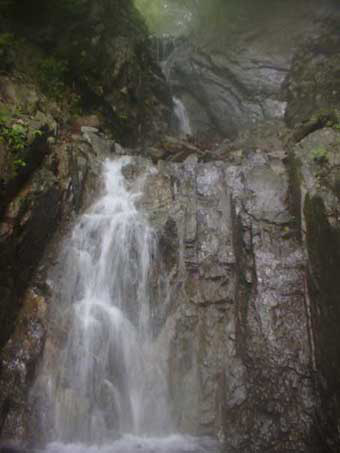 二股から上の写真のような滝が見え、下部の滝は登っていける。