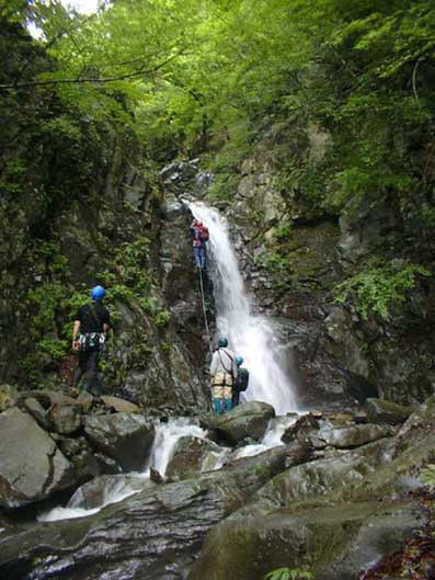 はじめのうちは数メートルの滝がいくつか続くが特に問題なく登れる。