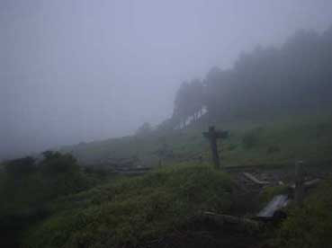 それを過ぎると水の涸れたガレ沢になり上り詰めると正面は、崩壊した壁になるので左側の緑の斜面にルートを取った。しばらく登ると直接竜ケ馬場に出た。14:15。予定より2時間位余計にかかった。丹沢山の山頂には30分位で着いた。小休止の後下山開始。