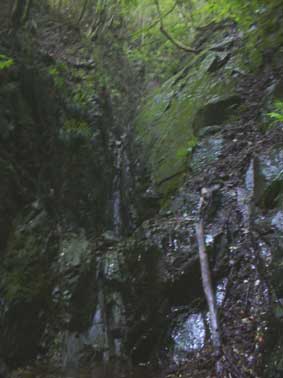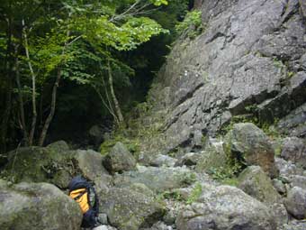 車の所にもどるには、登ってきた沢を下りるのが最短コースであり、上り下りすると沢の理解も深まる。何度も懸垂下降をしながら下りた。ボルトやハーケンに支点を取ったところには、短いスリングを残して来てしまった。11:50水無川に下り着くまで、登り下りを通してカエル2匹に会っただけで、人間とは誰にも会わなかった。静かな山行だった。