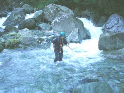 このページを表示しようとしてファイルが無くなっていることに気づいた。 我が家のバックアップファイルに写真だけ残っていたので、写真だけ掲示する事にした。 この沢登りはMEの配野君と一緒に行った。