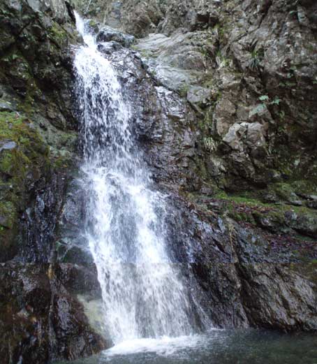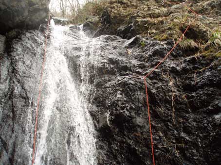 8メートルの滝は下からロープをつけて支点をとりながら登った。