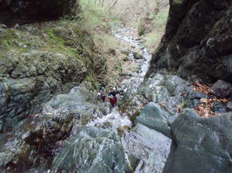 その結果、13mの滝では高巻きした後、懸垂下降して登り直すようなことをし、