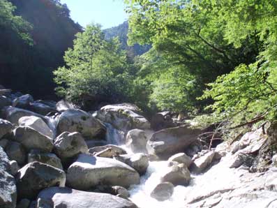 ![]() 大滝の上流は明るく快適な小滝が連続している。 |