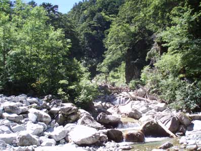 正沢川 それから正沢川に出るまでも大分時間がかかり 出発して1時間10分後 7:40正沢川に到着した。 沢の水を飲み大休止。 |