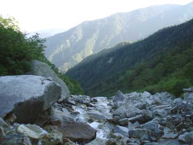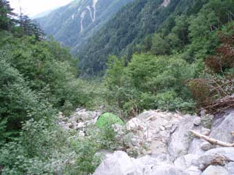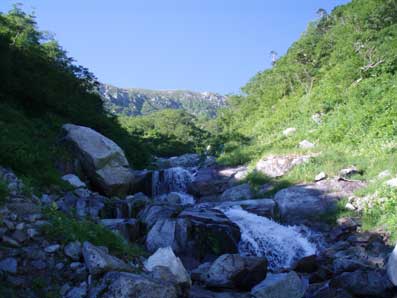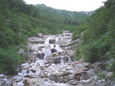 沢自体は大滝以外はほとんど直登出来るが、3000メートル級のアルプスの山に突き上げる雄大な沢だった。