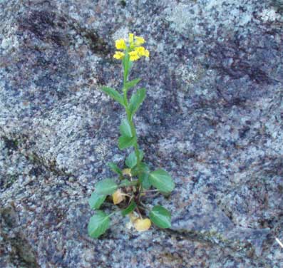 岩のわずかな割れ目から可憐な花が力強く生えていた。 かなり疲れてきたので、こういう花をみると励まされる。 |