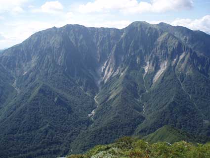 11:40 谷川岳、一の倉沢の岸壁、朝日岳など綺麗に見えた。 頂上は日差しが強く暑かった。数人の登山者がいた。 頂上で靴を換え、カレーパンを食べた。 12:00下山開始。 ゆっくり休んだつもりだったが20分間だけだった。 |