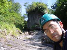 9:00 大岩。この岩もこの沢の見どころの一つだ。 どう見ても林家三平師匠だ。みんなそう言っているが、三平岩という名前にはなっていないようである。 ハナゲの滝よりはよっぽど良いネーミングだと思うが。 この日は左側は水流がほとんどなかった。わざわざ水の流れている右側を登った。 ![]() |