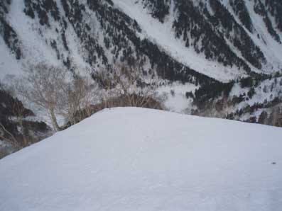 所々ナイフリッジが現れる。 |