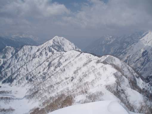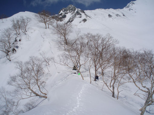 槍平から中崎尾根へ登る尾根の眺め |