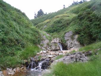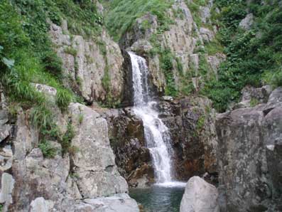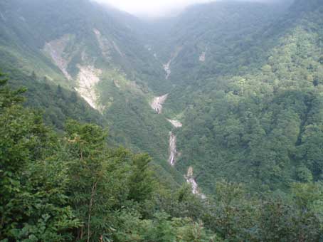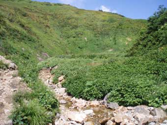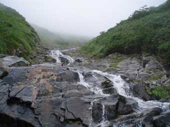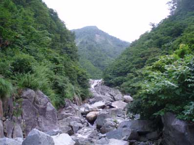 13時頃下り始めた。 膝や大腿がかなり疲れた。 途中から米子沢の全貌が見渡せるところがあった。 15時20分ころ駐車場に戻った。 足はがくがくだった。 帰りの関越道は渋滞30キロ90分という状態だった。 なにも対策をとらないのしゃくなので一般道へ下りてみた。国道17号線をしばらく走り、 東北道の羽生ICから高速に戻った。比較的スムーズだった。 登山口には米子沢は危険だから入るなと書かれているが 単独でもさほど困難を感じるところはなく、気持ちの良い沢だった。 |