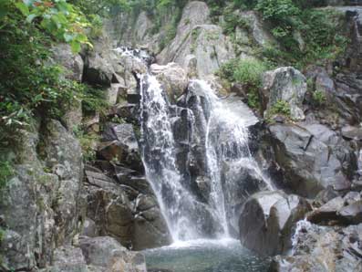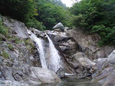 2段になっているこの滝は右から登った。 |