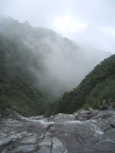 一時視界がかなり不良になったが、水が流れてくる方へ登っていけばよいので 迷うことはない。 |