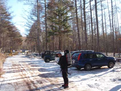 | 年末に休みが取れそうもないので、一月早く山へ行くことにした。 たくさん雪があるところが良いと思い、遠見尾根から五龍岳へ登るつもりだったが、 長野県北部の天気予報がどんどん悪い方へ向かっていったため 目的地を南へ変更し、八ヶ岳にした。 阿弥陀岳南陵は2000年1月に単独で登っているが、今回はG隊員と一緒だ。 出来ればP3の直登ルートの方を登ってみたいと思いロープなどを持った。 11月28日(金)仕事を早く終わらせ、G隊員と待ち合わせて20時ころ自宅を エクストレイルで出発した。 すぐにスパッツとデジカメを忘れた事に気付き引き返した。 中央道の双葉PAに23:00頃到着。車中宴会の後就眠。 11月29日(土) 飲み過ぎで頭痛。朝6:30まで寝ていた。 朝食はPAでうどんを食べた。 7:30頃PAを出発し舟山十字路に8:30頃到着した。 舟山十字路は以前よりも大分広い印象を受けた。 最近降雪があったようで、うっすらと地面を雪が覆っていた。 ここで荷物を取捨選択した。 わかんとヘルメットはおいていくことにした。 水は水筒1本分だけにし、食料も少し減らした。 9:00出発 |