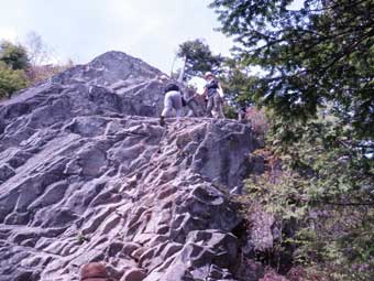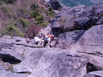 奥秩父・乾徳山 2009年5月23日(土) 職場のメンバーを連れて総勢7人で登山してきた 以前から勤務先の職員で山登りをしようと言う話が出ており、第1回は乾徳山に行こうと考えていた。 私は1990年10月に1度登っているが、2008年3月にもう一度下見のために登った。 前回は登り3時間下り2時間程度の行程だったが、今回は登り4時間、下り3時間余りかかった。