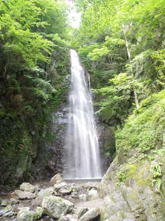 岩肌の面白い5メートルくらいの滝。 |