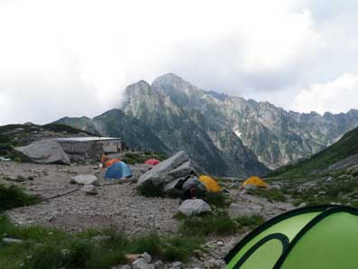 13:20剣沢の幕営地に到着 剣岳がよく見えるところだ。 早速テント場の受付を済ませた。 昨年ビールを買った剣沢小屋が無くなっているのでびっくりした。 少し下に移転していた。 ビールはそちらへ行かなくてはいけないと言われた。 ビールは必需品なので迷わず新しい剣沢小屋へ向かった。 意外に近く、10分くらいで付いた。何度も買いに来られないので2本買った。 帰りは登りなので少し疲れた。 ビールを飲みながらテントを設営。 まずラーメンを食べて、ビールをもう1本飲み一眠り。 夕方フリーズドライのカレーとアルファ米のカレーライスを食べた。 このカレーはアマノフーズの新製品で味は良いのだがとろみは全くなかった。 夜は早々に寝た。 風も無く穏やかな夜だった。 |