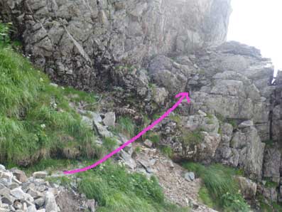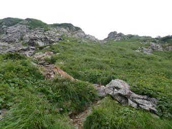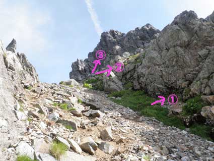 ![]() ここに来られればガリーは簡単に登れる。 |