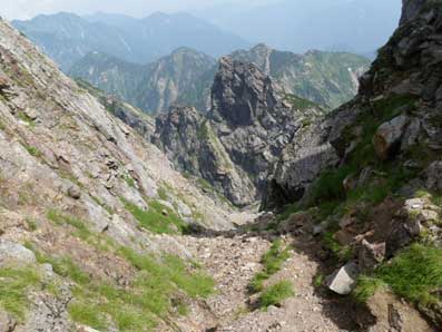 ![]() 下降途中で上の方を振り返った景色。 |