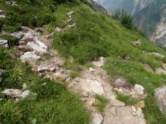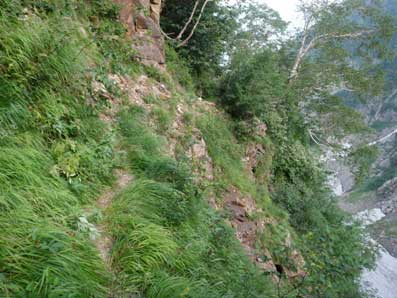 ![]() トラバース道の始まり。 他のHPでよく見る写真だ。 実際の場所では、異なった印象を受けたが、写真にしてみると、よそで見た写真と全く同じ物が撮れていた。 |
