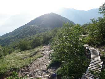![]() 仙人池ヒュッテまでは大部分歩きやすい木道になっていた。 |