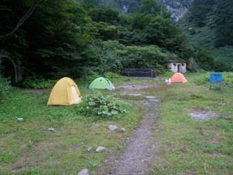 阿曽原温泉の管理人も感じが良かった。 テントの受付をしてすぐビールを買った。 ここは発電所がちかくにあるので電気が来ているようだ。 テント場は小屋から1段下がったところにあり、露天風呂はテント場から5分ぐらい降りたところにある。 女性客もいるときは時間で区切るようだが、この日は女性はいなかったので何時に入っても良いと言われた。 テント場ではまたイギリス人と一緒になったが、水場のそばにいた蛇を気にしていた。 日本で蛇をみたのははじめてだと言っていた。 |