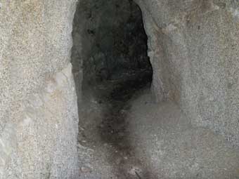 志合谷トンネルの入り口 荒削りのトンネルだ。中はU字形になっており真っ暗だ。 通過するのに5分以上かかり、途中で不安になる。 |
