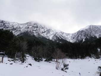 | 年末山行前の足慣らしのためにも山へ行っておきたかった。 土曜の朝職場から帰宅してから出発して行けるのは、やはり八ヶ岳までだろう、ということで、今回は今までに登ったことのない県界尾根を登ることにした。 八ヶ岳東側の尾根としては、北側から杣添尾根、県界尾根、真教寺尾根、天狗尾根があり、県界尾根だけまだ登った事がなかった。 11/28(土)朝、仕事から帰宅し、9:30頃エクストレイルで出発した。途中首都高で少し渋滞があり、美し森駐車場に13:30頃到着した。 県界尾根の往復であればもう少し上まで車で入っても良かったが、下山は真教寺尾根を辿って下りて来るのも選択枝の一つとして考えていたので、この駐車場に置いていくことにした。 13:50美し森駐車場→14:30車道終点→15:15尾根への取り付き→16:15小天狗→16:50 2200メートル幕営地 6:15幕営地→7:15大天狗→8:40鎖場の取り付き→10:15赤岳山頂→→11:10文三郎道分岐標識→11:45行者小屋→13:35赤岳山荘(そばを食す)→14:30美濃戸口→タクシーで→美し森15:00頃 |