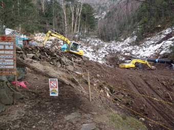 南沢で大規模な治山工事が行われていた。 大きな堰堤を作るのだろうが、興醒めだ。 あの重機をどうやって運び入れたのだろうか。 美濃戸山荘の近くでカモシカくんに出会った。 小柄でずんぐりしていた。 しばらく見つめ合った。寂しそうだった。 |