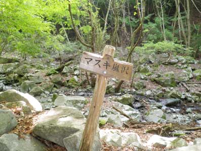 歩き始めて30分くらいで”マスキ嵐沢”の看板が出てきた。