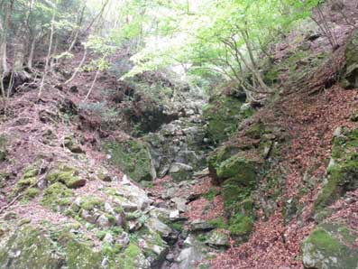 F7をすぎるとしばらく涸れた沢筋を登って尾根道に出る。12時15分ころだった。