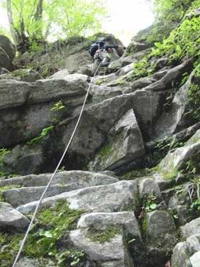 ロープを付けて登った。上にはボルトが打ってありセルフビレーを取って後続を確保した。